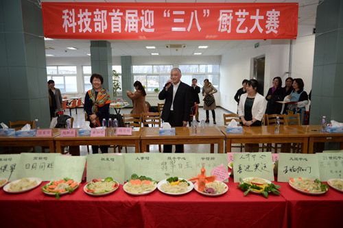 3月7日,科技部直属机关工会隆重举办首届迎“三八”厨艺大赛。部党组书记、副部长王志刚为获奖单位颁发证书并讲话。