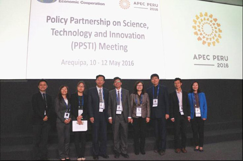 亚太经合组织(APEC)科技创新政策伙伴关系机制(PPSTI)第7次会议于2016年5月10日—12日在秘鲁阿雷基帕举行。来自中国、美国、秘鲁等16个APEC成员经济体、中国澳门、APEC工商咨询理事会(ABAC)、国际科技园协会(IASP)、泛太平洋大学联盟(APRU)等代表100余人参会。中国科学技术部国际合作司陈霖豪副司长率中国代表团参加了此次会议,并作为PPSTI机制主席主持了会议。应人力资源组邀请,陈霖豪副司长作为PPSTI主席在教育网络会议上做了主题发言。