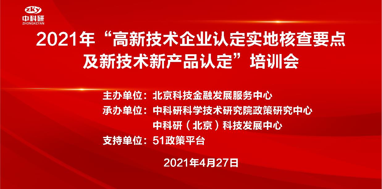 为了帮助企业解决高新认定申报中遇到的实际困难和问题,“北京科技金融发展服务中心联合中科研科学技术研究院政策研究中心、中科研(北京)科技发展中心”于4月27日下午联合举办“高新技术企业培育与高新技术企业认定申报政策和实操”培训会,帮助企业发现问题、解决问题,指导企业准确把握高新申请材料的重点及技术要点内容展示,合理做好2021年高新认定申报的准备工作。