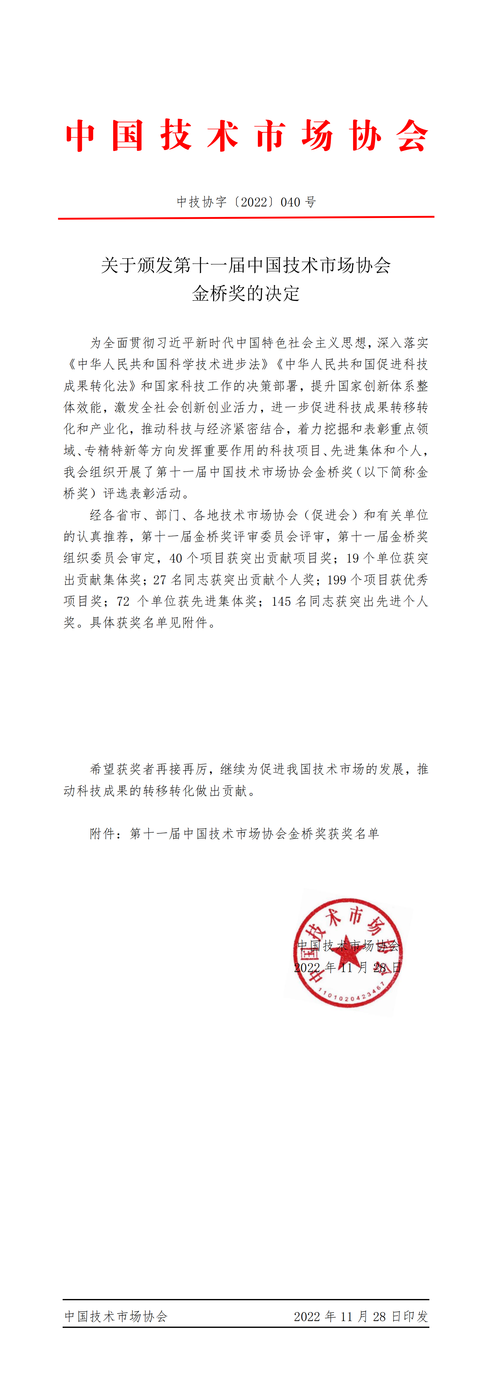 基于《科技咨询师新标准》搭建人才培养协同化工作体系项目荣获第十一届金桥奖突出贡献项目奖