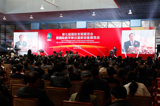 在全党全国热烈庆贺十八大胜利召开之际,第七届国际发明展览会暨国际教学新仪器和新设备展览会11月9日至12日在昆山国际会展中心举行。科技部、教育部、知识产权局、江苏省、苏州市、昆山市的领导出席了今天上午在会展中心举行的开幕式,祝贺展会胜利召开。30多个国家、3000多个项目、近5万平米展厅,这是近年来规模最大的一次发明专利成果及教学装备国际展示交易活动。